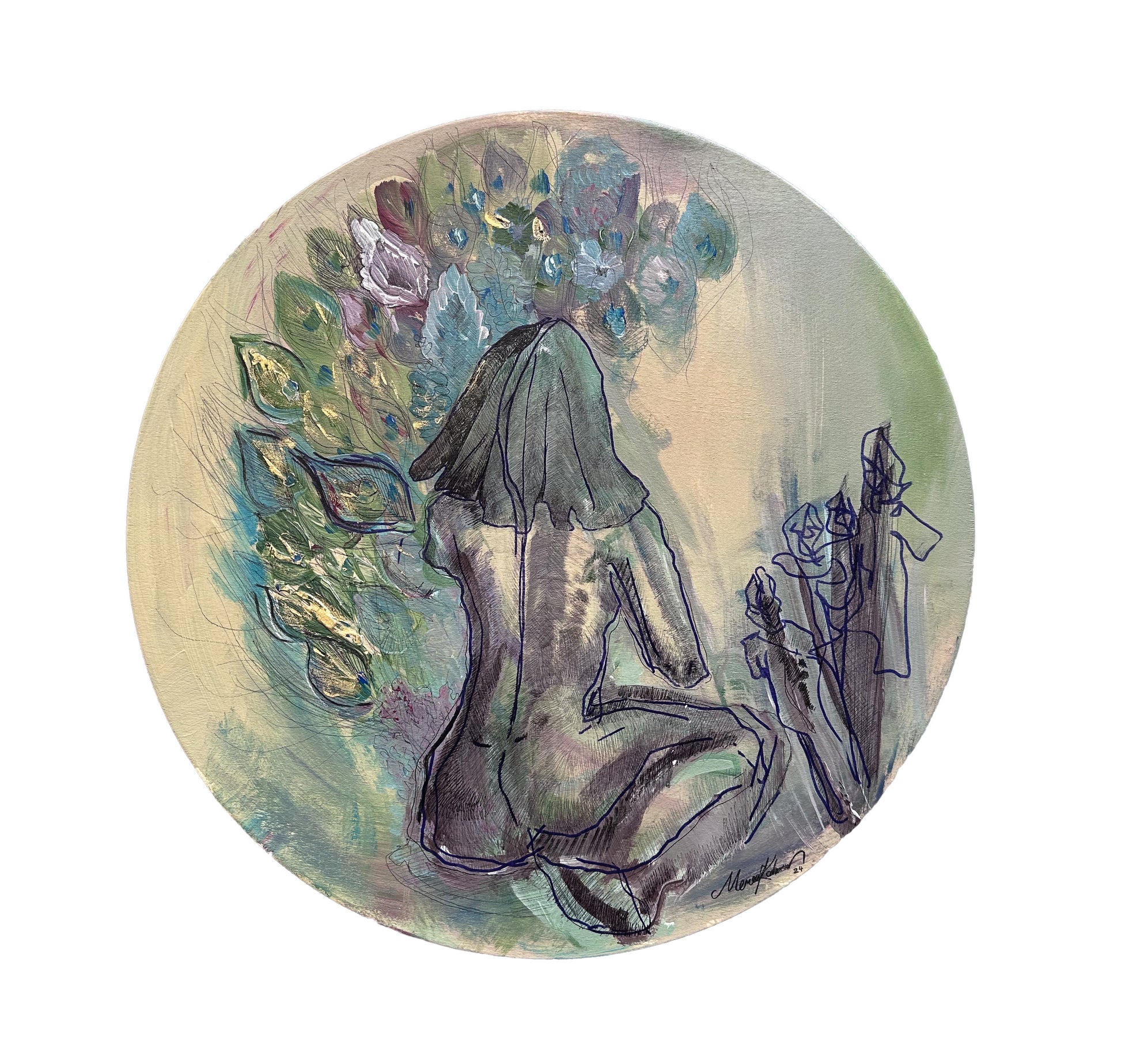 Mixed media on board panel, Diameter 40 cm, 2024